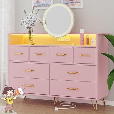 SMART STORAGE SOLUTION: Features 8 deep drawers for organizing clothes, books, cosmetics, or household items. The open shelves are illuminated with LED lights, ideal for displaying photos or decor. This dresser helps you keep every room neat and stylish.