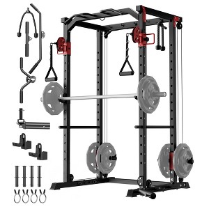 - Heavy-Duty Squat Rack & Power Cage for Home Gym--Built with reinforced steel, this squat rack combines the durability of a commercial power rack with the versatility of an all in one gym.