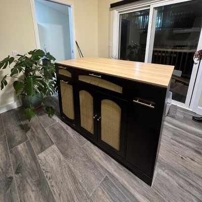 - Five Metal Universal Wheels: With the brakes, the island provides a stable work surface for preparing cooking ingredients. Unlock to effortlessly relocate the island position near stoves for cooking or dining areas for serving, adapting to your needs