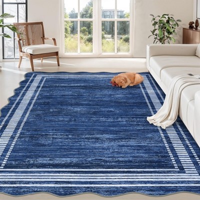 Garvee Scalloped Edge Rugs for Living Room, Bow Pattern Solid Rug, Washable Low Pile Non Slip Area Rug