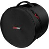 The Gator Icon tom bag offers heavy-duty protection for toms, keeping them safe from the rigors of transport and storage. Thoughtfully designed for drummers who need to protect their gear, this bag features a durable nylon exterior that resists tears, punctures and abrasions. A reinforced padded handle allows for easy and comfortable transport between venues, studios or practice spaces. The rugged nylon hand grip won't dig into hands even when loaded with gear. The material resists tears, punctures and abrasions so drums stay protected. It also stands up to harsh weather, keeping gear dry if get caught in the rain to and from vehicle. The thick padding cradles drums in plush cushioning, while the bag maintains its shape for easy loading and unloading. A reinforced rubber base provides a stable foundation on rough surfaces.