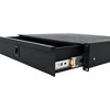 The Gator Standard 2U Rack Drawer is 14.2 inches deep and is constructed of cold rolled 16 gauge steel. It fully encloses desired equipment and has smooth glide slides and spring loaded latches for easy access. It features two 2-in. rubber grommets for rear access and a lock knock-out, with included lock and key.