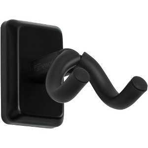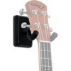 The Gator Frameworks Wall Mount Ukulele/Mandolin Hanger is designed to fit all sizes of ukuleles and mandolins.Features include:Elegant black finish decorative wall plate hides mounting hardware for clean and stylish lookSuperior mounting design ensures the instrument hangs parallel with the wall for flawless displayRubberized swivel yoke to properly cradle instrument neckSleek black standoff provides ample clearanceFoam wall pad prevents surface scratches or marringEasy installation, perfect for home, studio or retailIncludes mounting screws and drywall anchors