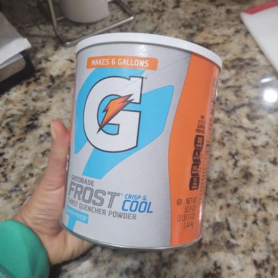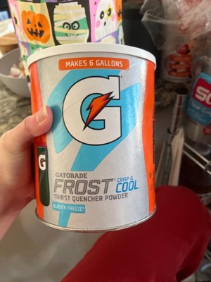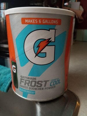 Gatorade's Frost Glacier Freeze in the 6-gallon powder canister: Your ultimate hydration solution for refreshing and effective rehydration.
