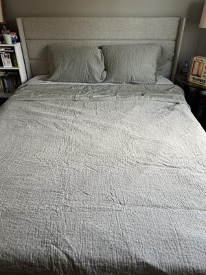 I’ve been searching for a duvet cover that feels both minimal and elevated, and this one really delivers. The muted sage-gray color is even more beautiful in person. It’s calm, neutral, and incredibly versatile. It complements my wood furniture well and actually doesn’t overpower the space. What I love most is the subtle texture/gauze. The tiny stitched pattern gives it dimension and makes the bed look finished, even without extra throw pillows or blankets. The fabric is soft and breathable, with just enough weight to keep it from looking flimsy. I think it would be ideal for layering year-round. The cover is slightly larger than my king-sized duvet insert, but not by much. It’s easy enough to tuck the extra fabric under or at the edges for a clean, tailored look. In some ways, the extra room gives the bed a more relaxed, cozy feel that I really enjoy. The fit overall is good, and it lays smoothly across the bed with a nice, even drape. My only small critique is that it doesn’t have decorative edging or ties at the bottom, which could have added a bit more polish. Still, for the quality and aesthetic, it’s a fantastic buy. I’d definitely recommend it.