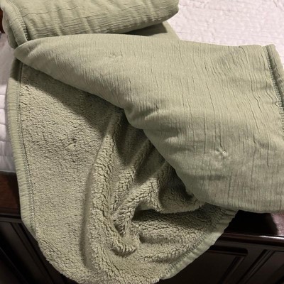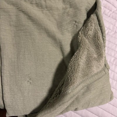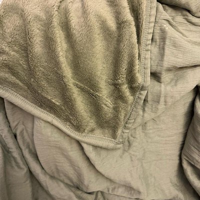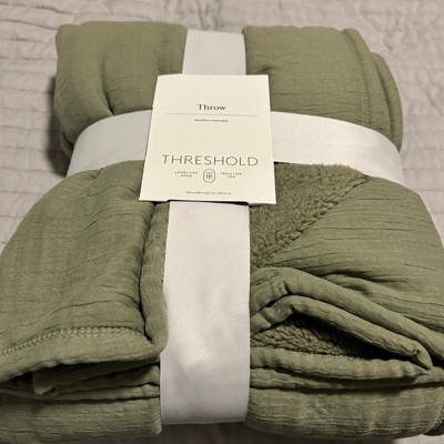 [This review was collected as part of a promotion.] The Threshold Reversable Gauze Throw in green is not my favorite. I love the soft Sherpa like side of it, but the gauze side just seems not as desirable for me. I feel like this blanket would just get ruined very quickly because of the gauze material. For this reason, I will be taking it back to Target for a return.
