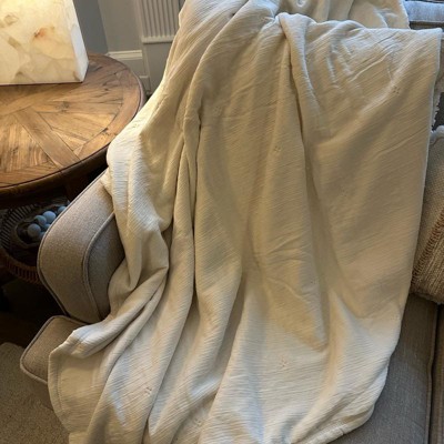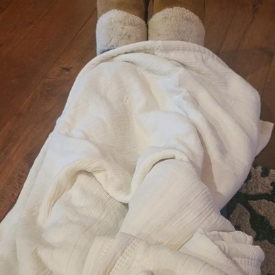 [This review was collected as part of a promotion.] The Threshold Gauze throw that is reversible with the cozy material on the other side is a beautiful throw but I don’t see it being in a home with children. It sounds weird to say but the gauze side is almost too delicate and I fear that it would be ruined in three seconds at my house as my kids like to build forts. It would be perfect just sitting on an accent chair, but just for looks.