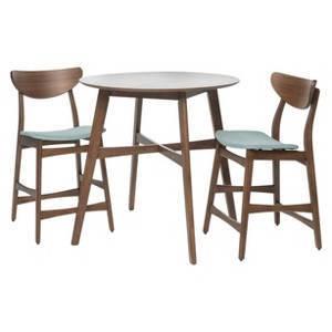 Christopher Knight Home Gavin Counter Height Dining Set - Natural Walnut/Mint: 3-Piece, Round Table, Upholstered Chairs