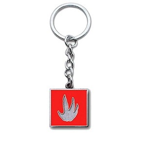 - Keychain shows the icon of the monster class in red and features raised and embedded details in brushed metal finish.