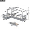 This L-shaped platform bed is thoughtfully designed to maximize comfort and functionality in compact spaces. Its smart layout accommodates multiple sleepers while optimizing floor area, making it ideal for shared rooms or growing families. Three integrated storage drawers provide convenient organization for everyday essentials, helping keep the bedroom neat and clutter-free. Crafted from durable pine wood and MDF with a sturdy slat system, this bed delivers reliable support without the need for a box spring. Combining space efficiency, storage, and long-lasting construction, it is a practical solution for modern living.