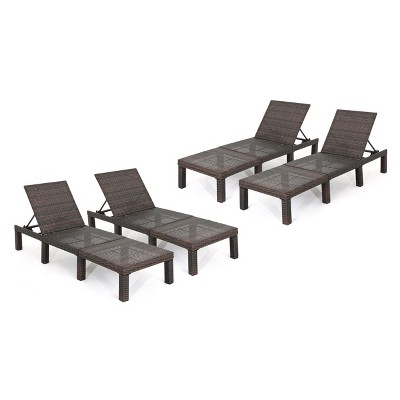 GDFStudio Abena Outdoor Acacia Wood Adjustable Chaise Lounge with Wheels