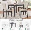 Elevate your dining experience with this farmhouse 5-piece wooden dining set, combining style, comfort, and practicality. Featuring a sleek square table and four upholstered chairs, it showcases a natural wood-grain finish that suits any décor. The rubberwood frame ensures lasting stability, while the smooth, scratch-resistant tabletop is easy to clean. Each cushioned chair offers ergonomic comfort with breathable linen fabric and curved back support. Perfect for compact spaces, the chairs tuck neatly under the table to save space. Quick to assemble with clear, labeled instructions.