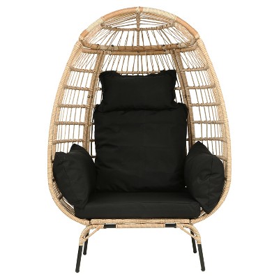 GDFStudio Anderson Hanging Egg Rattan Chair with Stand and Soft Removable Cushion, Black/Gray
