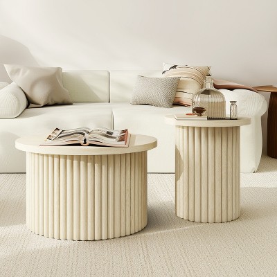 GDFStudio Arlen Modern 2 Piece Wooden Round Coffee Table with Wavy Edge