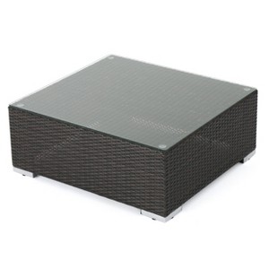 Rise and shine with a hot cup of coffee. Boasting a wicker weave finish and silver foot brackets, our versatile and stylish coffee table is as beautiful as can be. The simple silhouette and tempered glass tabletop give this table a casual yet refined look. Use it as the centerpiece of your carefully-curated patio and enjoy its classic, inviting aesthetic.