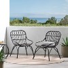 Style a patio that speaks to your refined taste and your love of entertaining with our commanding outdoor chair set. These two trend-forward, boho chairs are equipped with open weave designs for an intriguing aesthetic. Curved, wicker seating lends a hint of modern design to the chairs, so they're sure to complement your patio. Whether you pair them with your existing furniture or use them as inspiration for a new patio design, these chairs are sure to bring comfort and charm to your backyard.