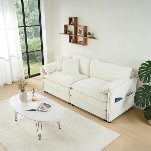 Designed for modern living, this sectional sofa combines plush comfort with minimalist appeal. Upholstered in premium chenille, this sofa features dual-layer cushions with a soft cotton top and resilient foam base for lasting support. With its wide 75.59" frame and deep 29.92" seat, it offers generous space to relax, nap, or lounge in style. The sleek pillow armrests and included support cushions enhance ergonomic comfort, while built-in side pockets keep daily essentials close at hand. Whether placed in a living room, bedroom, or studio, this modular sofa adapts easily to your layout and needs—with hassle-free assembly and timeless design.