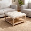GDFStudio Beaumont 33" Square Tufted Upholstered Coffee Table with Open Shelf