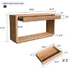 Bring timeless elegance and modern function into your home with this contemporary minimalist console table. Designed with sleek lines and fluid contours, it effortlessly enhances any interior style, from Scandinavian and farmhouse to transitional and modern. Its expansive 59.8" x 15.7" tabletop provides plenty of room to showcase lamps, artwork, books, or your favorite decorative accents, while the open space underneath allows you to slide in baskets, planters, or even a cozy pet bed for discreet storage. Two smooth drawers with real wood slat fronts keep keys, remotes, and everyday clutter neatly tucked away while blending seamlessly into the overall design. Built with premium craftsmanship and finished with a natural wood veneer, this table is made to resist scratches and everyday wear while supporting up to 80 lbs, giving you strength, stability, and long-lasting value you can count on. Perfectly versatile, it can serve as an entryway organizer, a stylish sofa table, a hallway hub, a decorative nook accent, or even a home office sidekick to keep supplies out of sight. Whether you’re looking to create a welcoming first impression, maximize tight spaces, or elevate your living room with a touch of understated sophistication, this console table delivers. Best of all, assembly is quick and painless—everything you need comes included, with pre-drilled holes, durable hardware, and clear step-by-step instructions. You’ll have it ready to enjoy in under 30 minutes, giving your home an instant upgrade without the hassle.