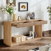 - Expansive Surface + Hidden Storage: The 59.8"L x 15.7"W tabletop offers plenty of space for lamps, art, or books, while the open area below keeps baskets, planters, or pet beds neatly tucked away. Two discreet drawers with real wood slat fronts hide clutter while maintaining a sleek design.