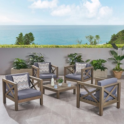Christopher Knight Home Bianca Outdoor Acacia Wood 5 Seater Sectional Chat Set with Cushions, Teak/Dark Gray