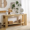 This rustic style table is crafted from natural wood with an unprocessed finish, showcasing unique textures and knots that bring warmth and charm to any home. Measuring 63 inches in length, it provides a spacious surface for dining, working, or displaying décor while maintaining a practical size. Built with a durable wooden frame and reinforced base, the table offers excellent stability and long-lasting use. Its versatile design makes it suitable for living rooms, dining areas, offices, or entryways, and the straightforward assembly ensures quick, hassle-free setup.