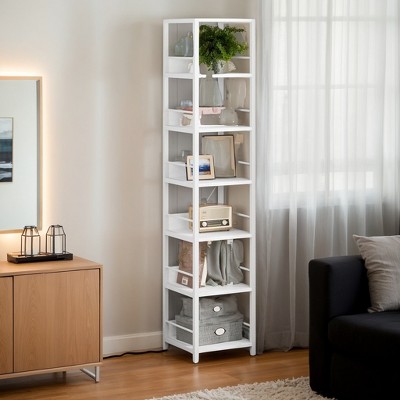 - FIVE OPEN SHELVES: Featuring five spacious tiers, this bookcase offers ample room for books, plants, décor, or small appliances. Its vertical design makes it ideal for compact spaces, offering practical organization without taking up too much floor space.