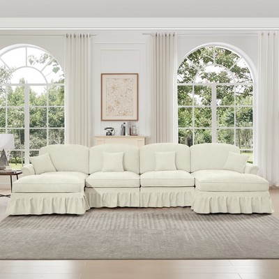 GDFStudio Callen Modern Corduroy Upholstered 4-Seater Sofa with Movable Console and Storage Ottoman, Emerald