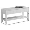 Designed to enhance both organization and comfort, this solid wood bench provides a convenient seating solution with hidden storage. Its sturdy construction supports daily use, while the clean white finish brightens entryways and living spaces. The lift-top design offers ample room for shoes, blankets, or accessories, helping keep your home tidy. With a compact footprint and timeless slatted details, it blends classic charm with modern practicality for versatile everyday living.