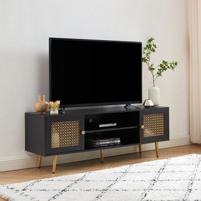 Stylish Rattan Design: This TV stand features a modern look with smooth, woven rattan door panels that bring warmth and texture to your space. Its unique design adds a natural, boho-inspired touch that complements a variety of home decor styles.