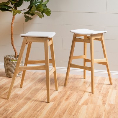 RUBBERWOOD FRAME: Crafted with a sturdy rubberwood frame, these stools offer strong, reliable support and long-lasting durability. The warm wood tones enhance the cozy, organic feel of your dining or kitchen space.