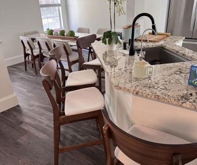 • UPHOLSTERED SEATS FOR COMFORT: Each stool is fitted with a cushioned, fabric-upholstered seat that provides soft support for extended sitting. Ideal for casual meals, morning coffee, or socializing at the counter with added comfort.