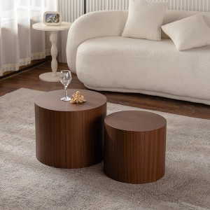 Our round coffee table set features a durable MDF top made from eco-friendly P2 particle board that's waterproof, wear-resistant, and built to last with a multi-step finish for a sleek, modern look. Designed to nest together for space-saving convenience, these versatile side tables are perfect for your living room, bedroom, office, or even a kid’s room. Use them together or separately throughout your home as side tables or stylish accent pieces. The artificial wood grain surface gives a smooth, natural feel that’s both visually appealing and great to the touch. With a clean blend of modern and industrial design, these tables easily complement any home décor style. Best of all, there's no assembly required—just unpack and enjoy right away.
