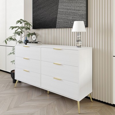 MULTIFUNCTIONAL STORAGE: Designed with six spacious drawers, this dresser provides organized storage for clothing, accessories, and household items. Its water-resistant surface allows easy cleaning, making it a practical solution for multiple spaces in your home.