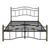 Combining classic convention with modern appeal, our metal bed frame strikes a delicate balance between old and new. This stylish frame offers a timeless elegance for your home while providing a low profile and sturdy slat design to eliminate the use of a box spring. Featuring classic finials at each post and an intriguing geometrical motif ornamenting both the headboard and footboard, this sophisticated bed frame is built with iron to imbue the room with a feeling of contemporary style.