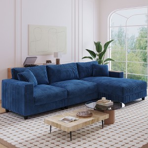 - Soft & Durable Corduroy Upholstery: Upholstered in high-quality corduroy fabric, this sectional sofa offers a soft, textured surface that feels warm and inviting. The fabric is not only comfortable but also resistant to daily wear and tear, making it ideal for households with pets or children.