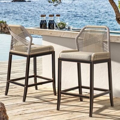 - LIGHTWEIGHT FOR EASY MOVING: Thanks to the aluminum frame, these barstools are easy to reposition as needed. Arrange them around your outdoor bar for parties or move them to a quiet corner for a peaceful morning coffee in the fresh air.