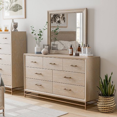 GDFStudio Crichton Modern Solid Oak Dresser Table with 4 Drawers and Shelves, Natural