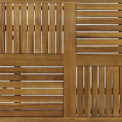 Enhance your outdoor gatherings with this stylish acacia wood dining table. The slatted design on the tabletop allows for better water drainage while adding a modern touch. This table is perfect for patios, gardens, or decks, providing ample space for family meals or social events. The sturdy acacia wood construction ensures durability, while the smooth legs add a touch of elegance. Easy to assemble, this table is a must-have for any outdoor space looking for a refined and durable dining solution.