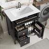 Upgrade your bathroom with this modern 30-inch freestanding vanity featuring a durable ceramic sink and a sturdy solid wood and MDF cabinet. Designed for both style and function, it includes a flip drawer, two spacious side drawers, and an adjustable interior shelf for customizable storage. The sleek finish pairs beautifully with gold metal handles, while soft-close hardware ensures smooth, quiet use. An open-back design simplifies plumbing installation, and the overflow-equipped sink provides added safety. Perfect for organizing toiletries while enhancing your bathroom’s contemporary look.