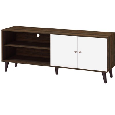 Upgrade your entertainment area with this mid-century modern TV stand that combines style and practicality. Featuring a smooth painted MDF frame and solid pine wood legs, it ensures both durability and elegance. Soft close doors with rounded A-line fronts hide five spacious shelves for organized storage, while dual cable holes keep wires tidy. The wide top accommodates TVs up to 65 inches, making it perfect for modern homes. Easy-to-follow assembly instructions and all hardware are included for a simple setup experience.