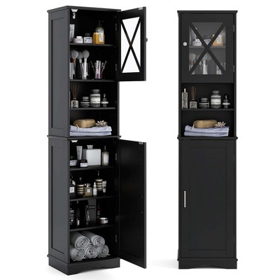 GDFStudio Ellis Modern Wood Bathroom Corner Storage Cabinet with Adjustable Shelf