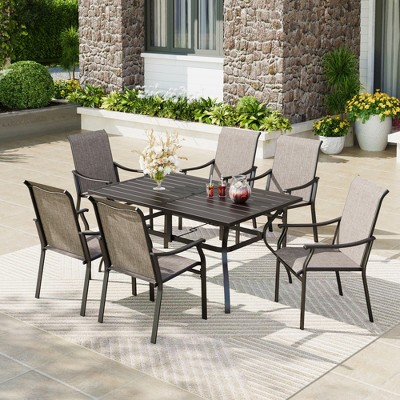 GDFStudio Eudora Outdoor Weatherproof 7 Pieces Patio Dining Set with 6 Textilene Chairs,Brown