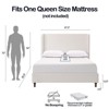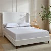- WINGBACK: This upholstered bed features a tall headboard with a stylish wingback design, adding both elegance and functional comfort. The winged sides not only enhance its contemporary appeal but also provide a cozy, draft-free sleep environment.