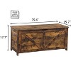 Add practical elegance to your home with this vintage-style storage bench. Measuring nearly 40 inches wide, it provides generous space for blankets, shoes, or toys while doubling as a sturdy seat. The rustic brown finish and U-shaped pull exude farmhouse charm, blending beautifully into entryways, bedrooms, or living areas. With a 300-pound weight capacity and smooth-opening hinges, it’s both safe and functional. Easy to assemble and clean, this bench combines classic design with everyday convenience for modern living.