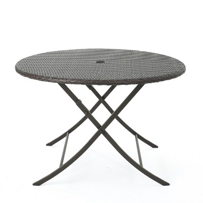 GDFStudio Fiona 64" Outdoor Square Wicker Weave Dining Table with Iron Frame