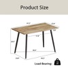 This modern-style table features a sleek rectangular design with a wood-grain MDF surface and black metal legs, adding contemporary elegance to dining areas, kitchens, or home offices. Built with durable MDF panels and a reinforced metal frame, it supports up to 300 lbs, offering long-lasting strength and stability. Equipped with non-slip, anti-scratch leg pads, it stays securely in place while protecting floors from damage. Its versatile design accommodates dining, working, studying, or displaying décor, fitting perfectly into apartments, studios, meeting rooms, and small living spaces. Easy assembly makes setup quick and hassle-free.