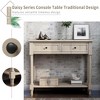 Bring classic elegance to your home with this traditional console table. Expertly crafted with a solid pine wood frame and engineered wood panels, it ensures lasting stability and durability. The design features two spacious drawers for concealed storage and a sturdy bottom shelf for displaying décor or daily essentials. With carved detailing and a compact footprint, this versatile piece fits perfectly in entryways, living rooms, dining rooms, or studies. Easy to assemble with included tools, it blends vintage charm with modern practicality.