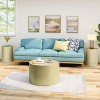 Create a unified and stylish look in your living room with our modern-industrial table set, designed to instantly elevate your home décor. Featuring beautifully hammered surfaces, this set includes a striking centerpiece table paired with coordinating side tables for a sleek, cohesive appeal. Supported by sturdy cylindrical iron frames with a textured metallic finish, these tables bring lasting durability and a touch of brilliance that will enhance your space for years.