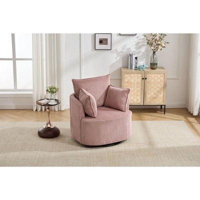 GDFStudio Gilmanton Modern Upholstered Swivel Accent Chair with Wooden Base, Pink